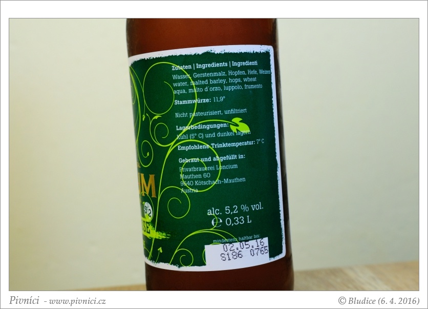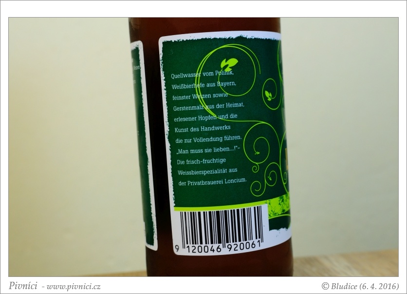 Fajn pšenice, vyvážená, čistá, velmi dobře se pije.Minimální trvanlivost: 2. května 2016