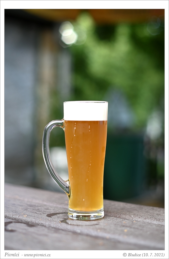Světle zlatá barva, více zakalené. Pěkná světlá pěna, dobře drží.Vůně (2,5 - lehce nadprůměr):