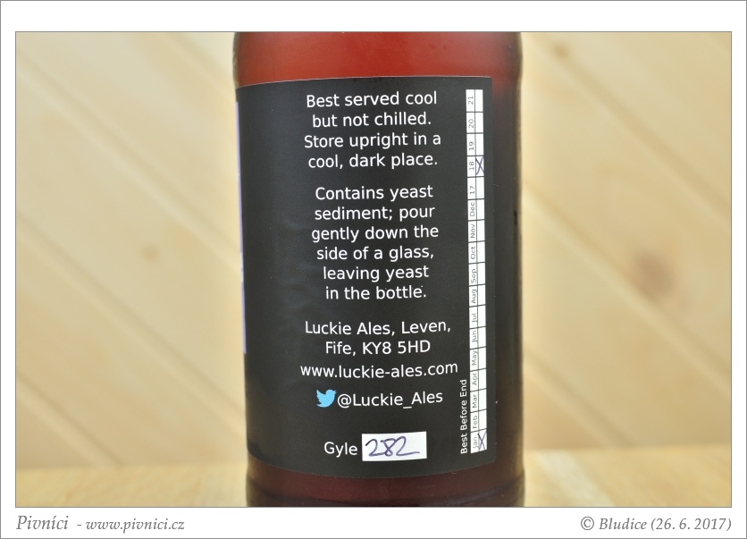 Vůně sladová, citrusová (citronová kůra, limetky), lehce kořenitá.Chuť (3,5 - velmi dobré):