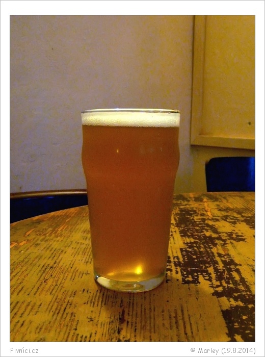 Zlatá barva, lehce zakalené, slušná světlá pěna, celkem drží, lehce kroužkuje.Vůně (3 - dobré):