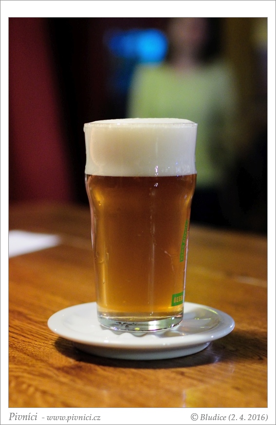 Barva tmavší zlatá, lehce zakalené. Pěkná hustá stabilní pěna. Kroužkuje.Vůně (2,5 - lehce nadprůměr):
