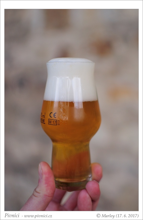 Světle zlatá barva, lehce zakalené, pěkná světlá pěna, velmi dobře drží.Vůně (3 - dobré):