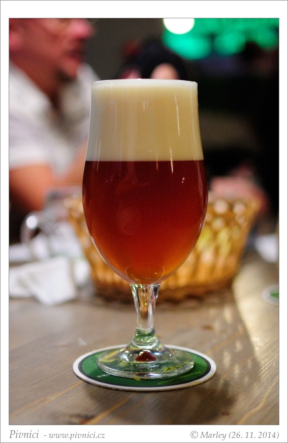 Temně měděná barva, středně zakalené, pěkná světlá pěna s okrovým nádechem, výborně drží, slušně kroužkuje.Vůně (3,5 - velmi dobré):