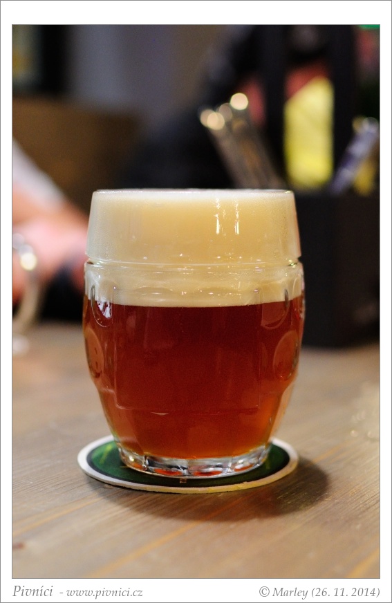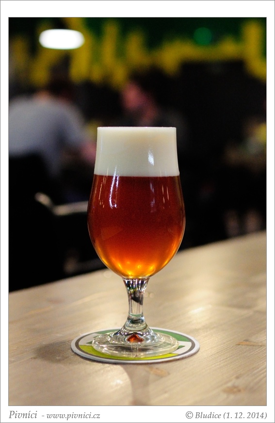 Barva tmavě měděná, lehce zakalené. Pěkná hustá stabilní pěna. Kroužkuje.Vůně (2,5 - lehce nadprůměr):