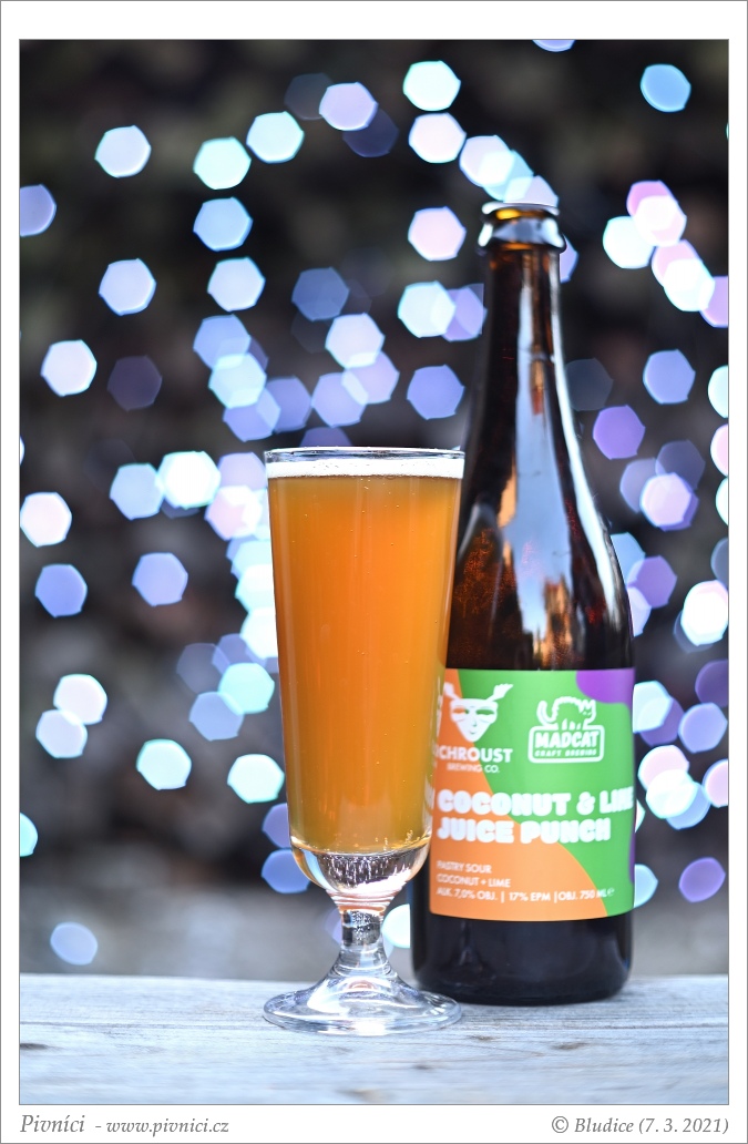 Vůně sladová, karamelová, bonparová, lehce nakyslá, s tóny limetky a kokosu.Chuť (3,5 - velmi dobré):