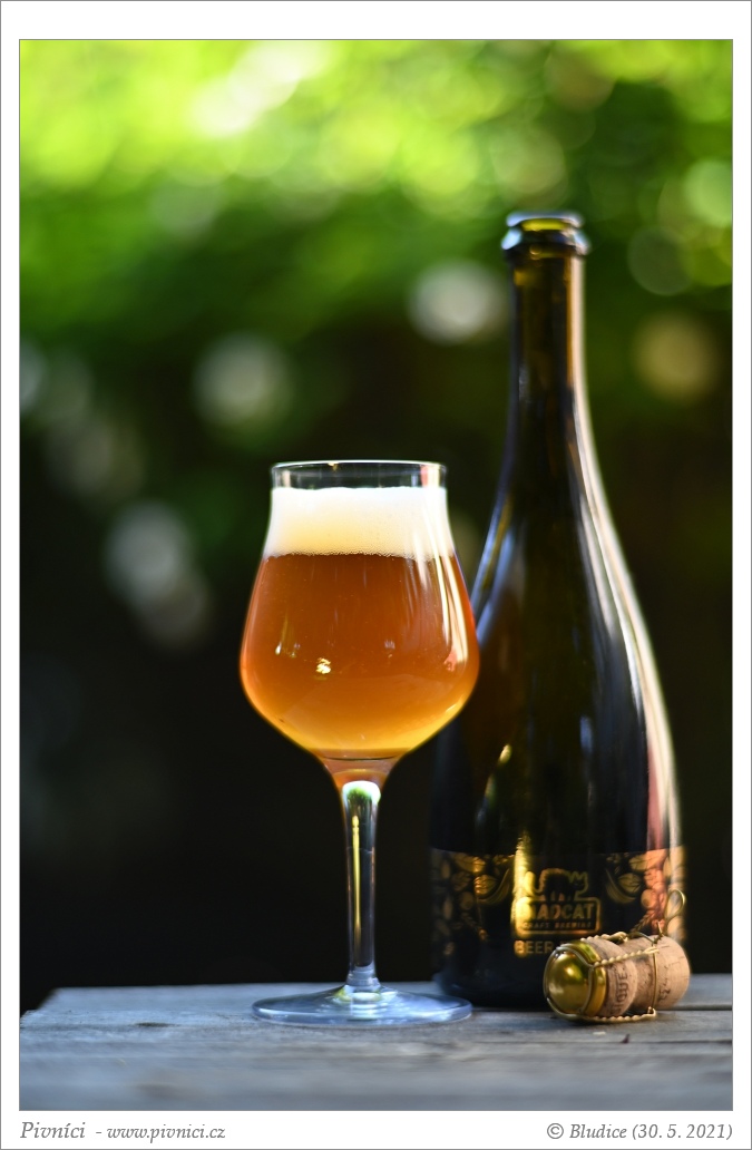 Tmavě zlatá barva, téměř čiré. Pěkná vysoká světlá pěna, výborně drží.Vůně (4 - výborné):