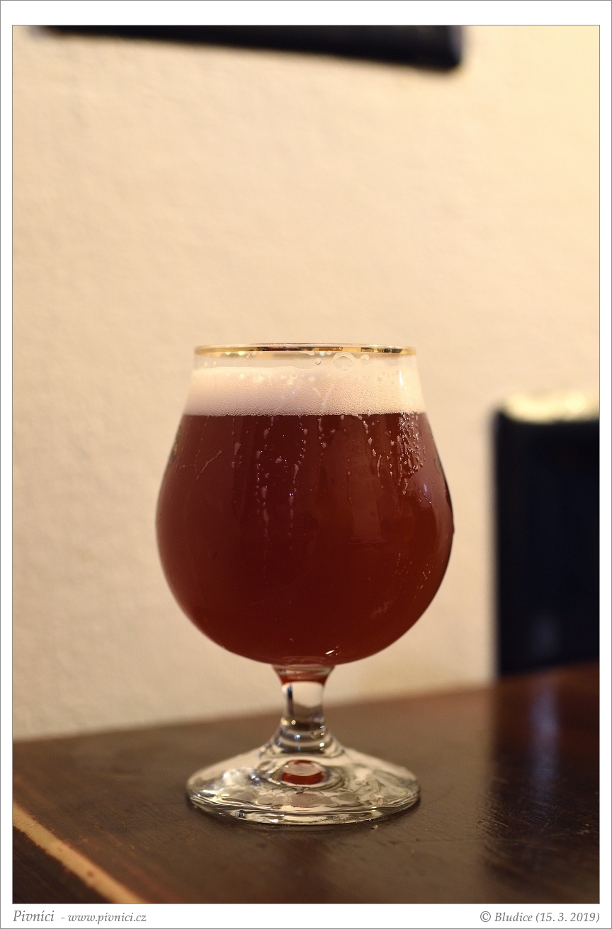 Nižší jemný říz, střední plnost. V chuti nakyslé, s tóny malin, lehkým obilným nádechem. Doznívání je nakyslé, malinové, jemně obilné.Celkový dojem (7 - velmi dobré):