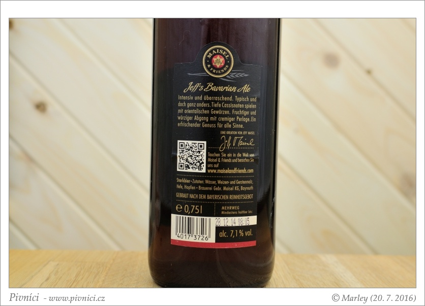 Zjevně infikované pivo s kyselými a Brett tóny. Je sice zajímavé, nicméně na seriózní divoká piva to nemá. Opravdu škoda, že to Maisel nezvládl…Vzhled (3,5 - velmi dobré):