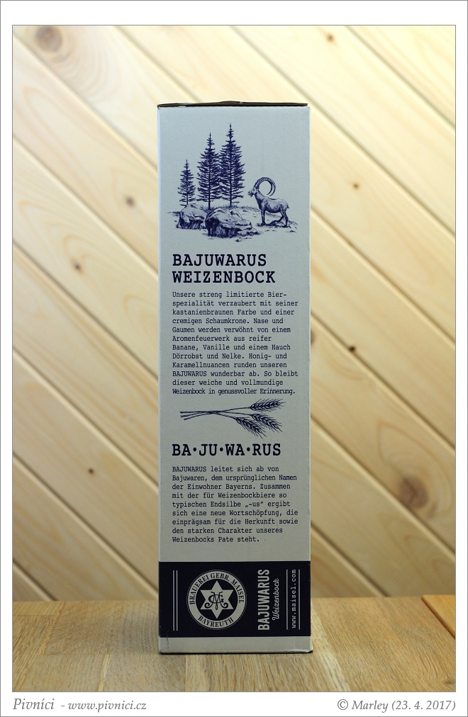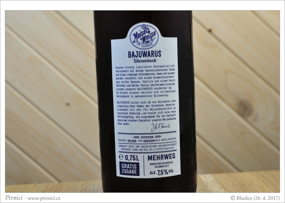 Karamelovější weizenbock, velmi dobře se popíjí.Lahvováno: 26. prosince 2015