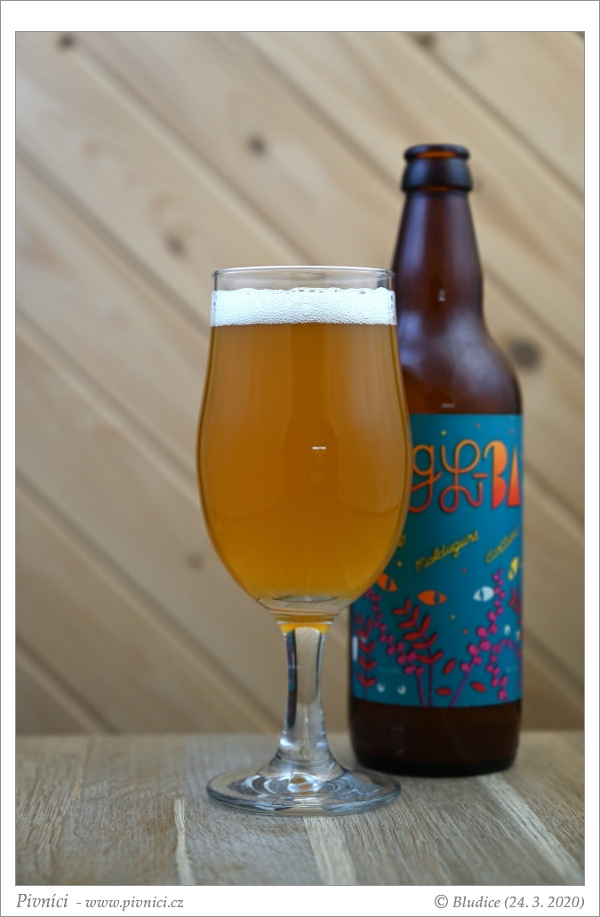 Zlatá barva, lehce až středně zakalené (v klidu lednice odpočívalo měsíc). Nízká světlá pěna, moc nedrží.Vůně (3,5 - velmi dobré):