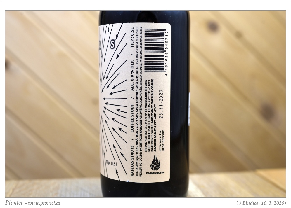 Chutný kávový stout, výborně se popíjí.Minimální trvanlivost: 25. listopadu 2020