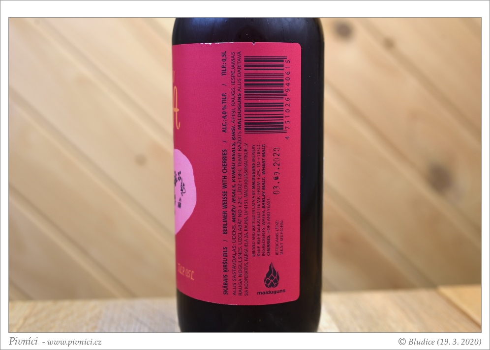 Vůně nakyslá, lehce višňová, malinová, trochu kefírová a obilná.Chuť (3,5 - velmi dobré):