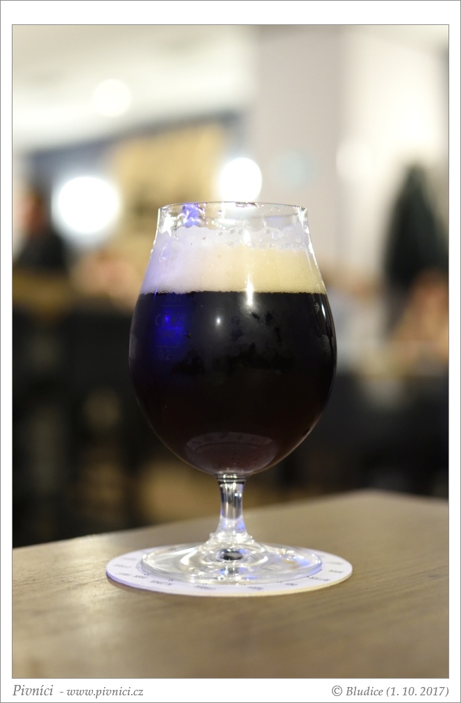 Ebenová barva, téměř čiré, pěkná světlá pěna s okrovým nádechem, dobře drží.Vůně (2 - průměr):