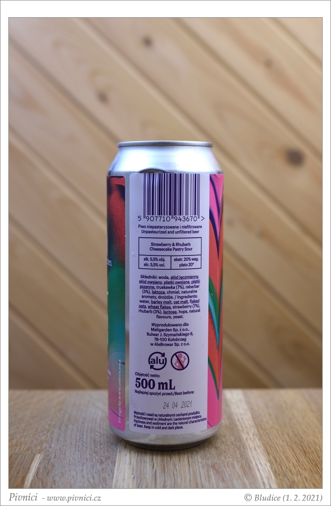 Vůně nakyslá, jahodová, vanilková, lehce rebarborového koláče, trochu obilná a pecičková.Chuť (3,5 - velmi dobré):
