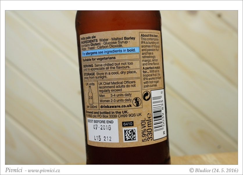 Trochu sladší, ale pěkně chmelené pivo. Velmi dobře se pije.Minimální trvanlivost: 31. července 2016