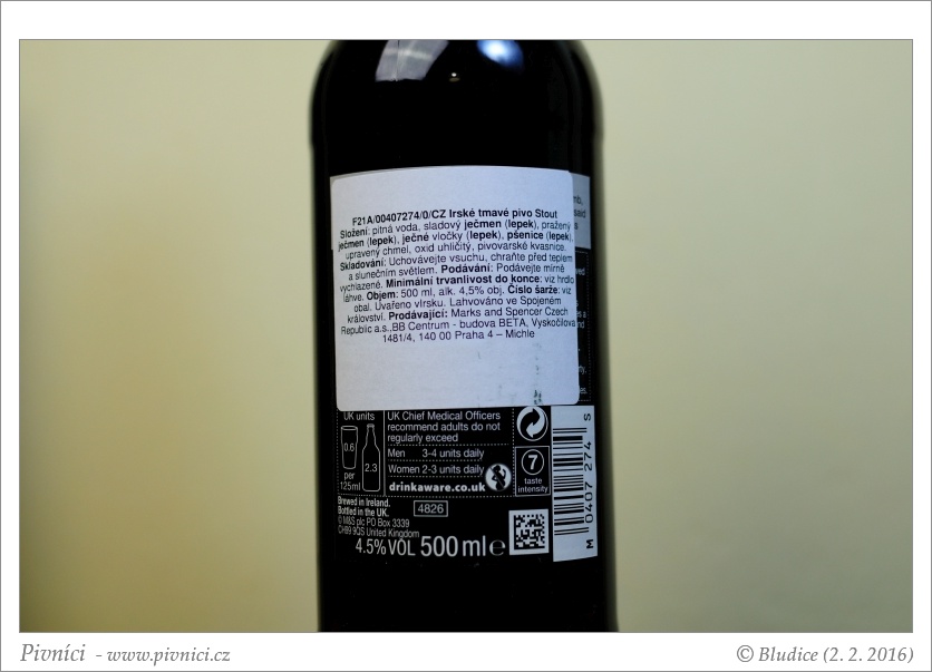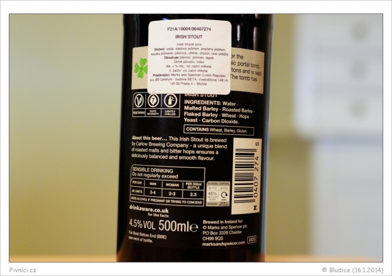Výrazný a chutný Stout, výborně se pije.Minimální trvanlivost: 30. dubna 2016