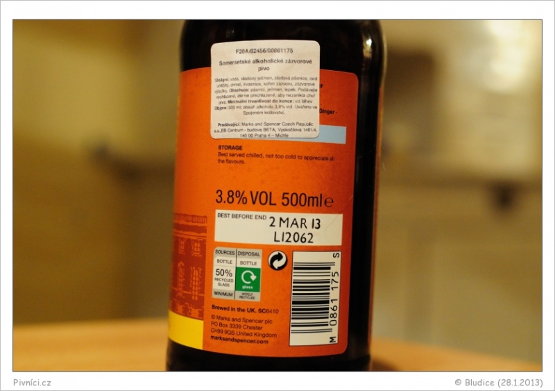 Decentní zazvorový ejl, který je velmi dobře pitelný. Zázvorová chuť se dobře doplňuje se sladem a chmelem.Minimální trvanlivost: 2.3.2013