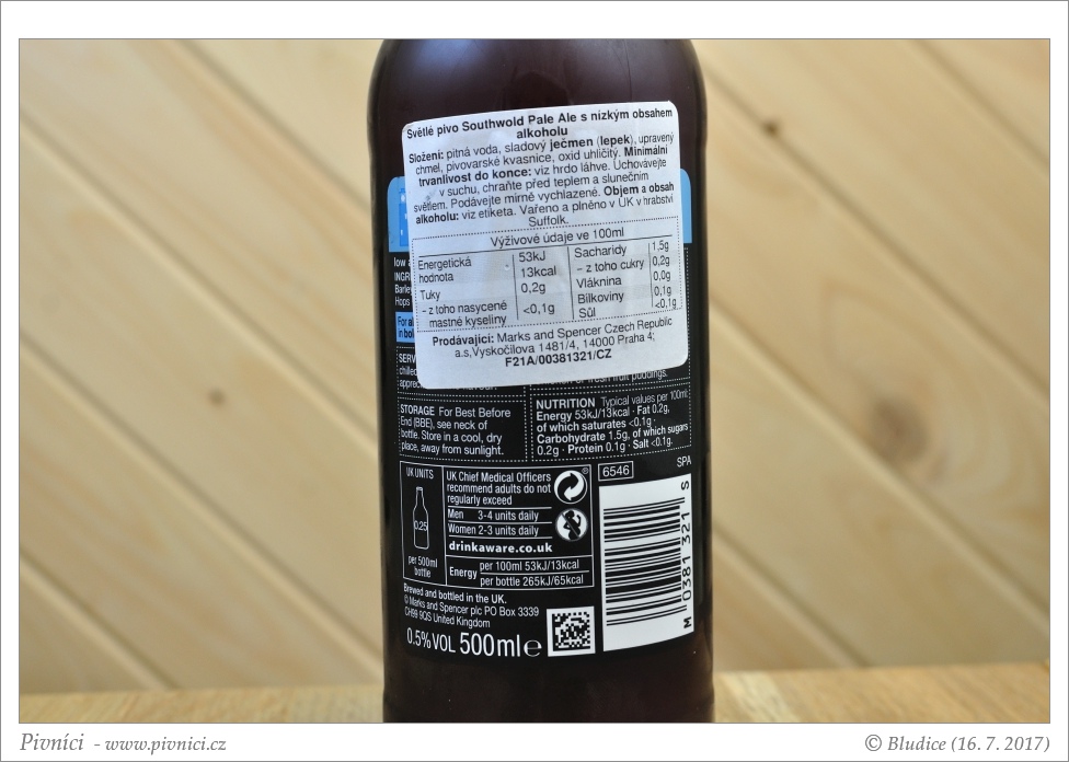 Okej nealkoholické pivo, prázdnější a s méně příjemně mladinovými tóny, ale s celkem příjemným dozníváním. Minimální trvanlivost: 31. března 2018