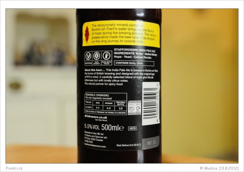 Fajn ejlík, nepije se špatně. Ale není tak vyvážený a příjemný, jako jiné anglické ejly… půllitr stačil.Minimální trvanlivost: 04/2014