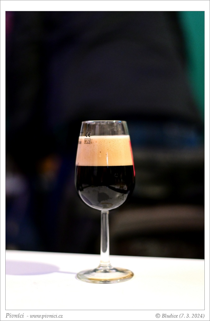 Barva téměř černá. Vyšší poměrně stabilní pěna světle béžové barvy.Vůně (3 - dobré):