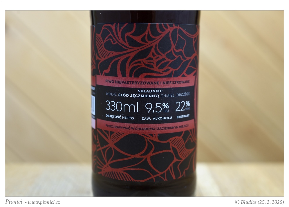 Barva mahagonová, velmi lehce zakalené. Pěkná hustá stabilní pěna.Vůně (3 - dobré):