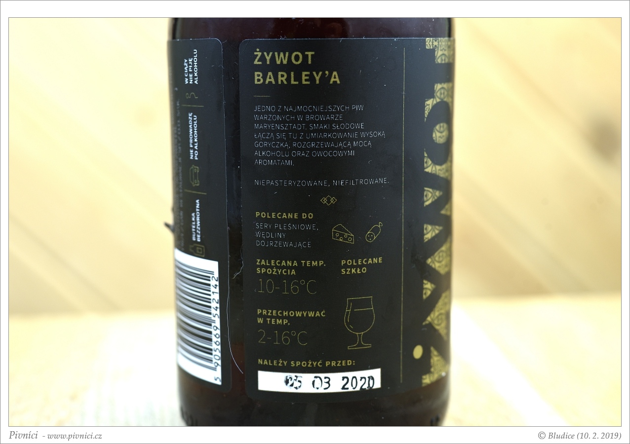 Chutné karamelovější barleywine. Velmi dobře se popíjí.Minimální trvanlivost: 5. března 2020
