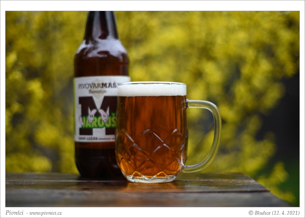 Zlatá barva, čiré. Pěkná světlá pěna, velmi dobře drží.Vůně (3 - dobré):