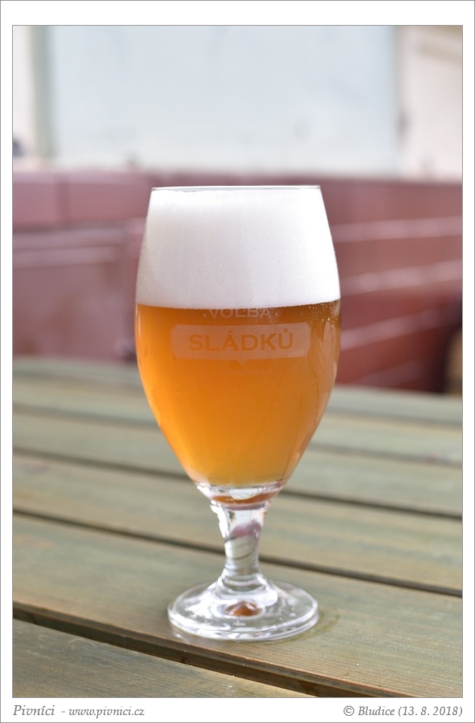 Zlatá barva, lehce zakalené. Pěkná světlá pěna, dobře drží, hezky kroužkuje.Vůně (3 - dobré):