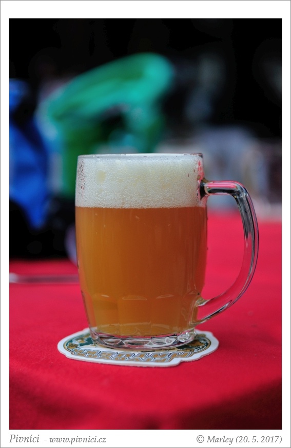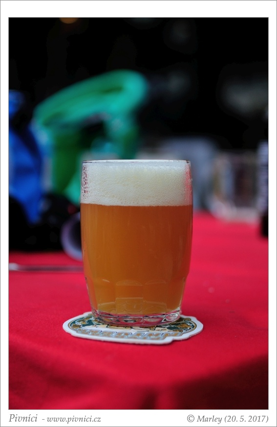 Zlatá barva, velmi až extrémně zakalené, slušná světlá pěna, průměrně drží.Vůně (3 - dobré):