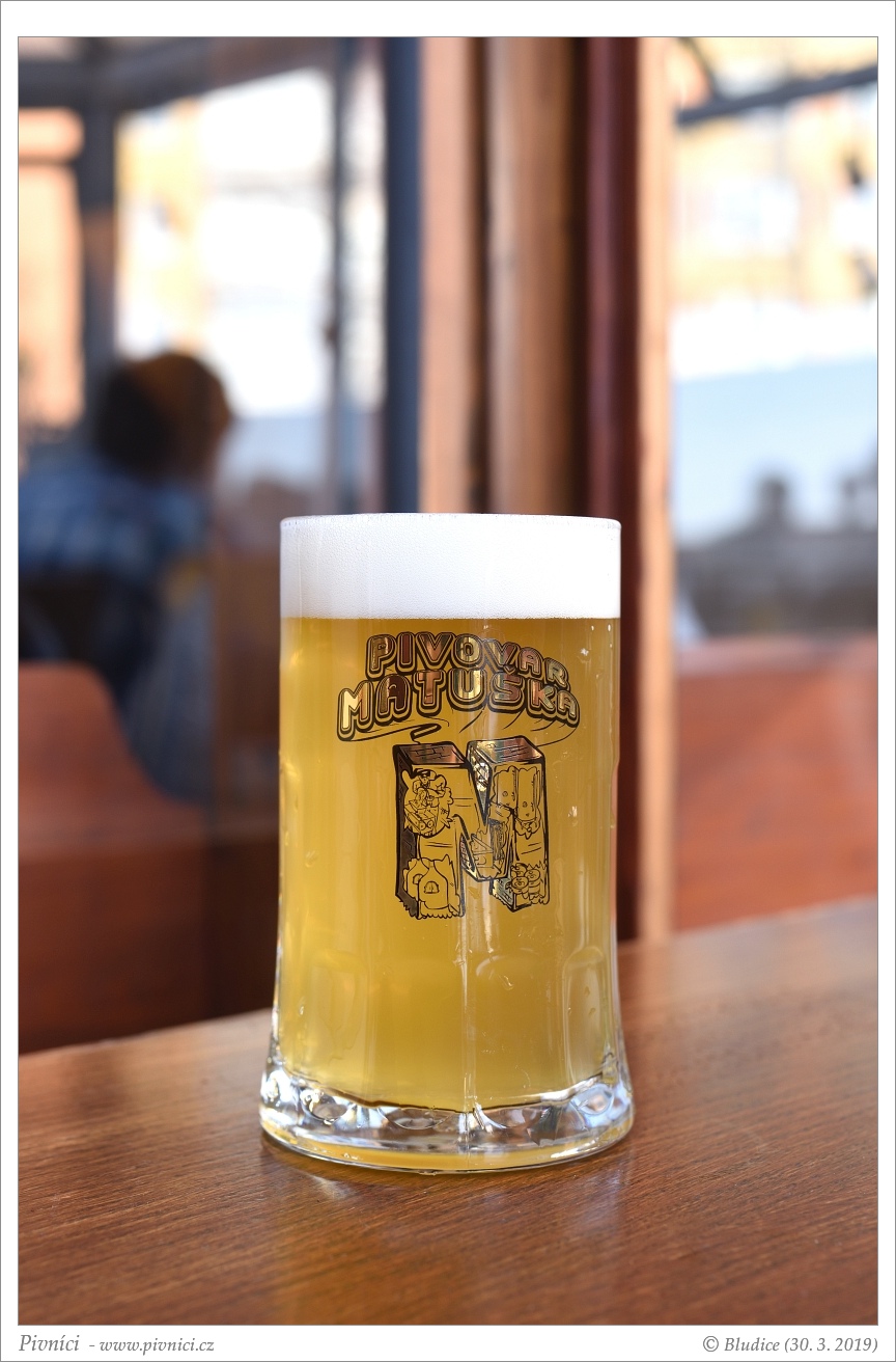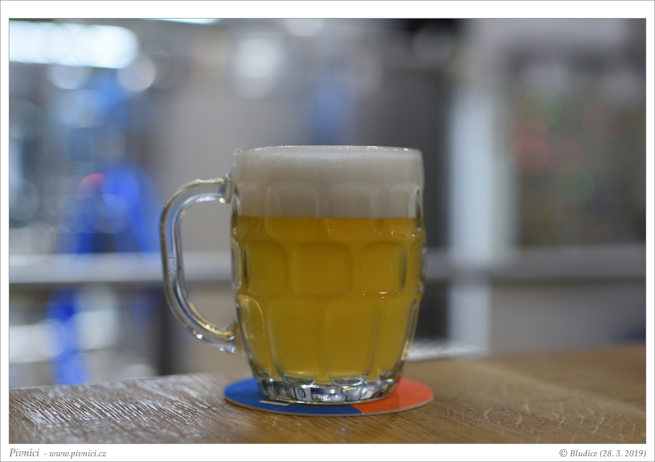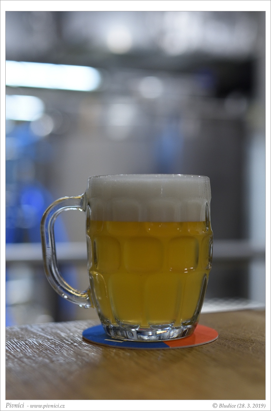 Světle zlatá barva, středně zakalené. Pěkná světlá pěna, dobře drží.Vůně (3,5 - velmi dobré):
