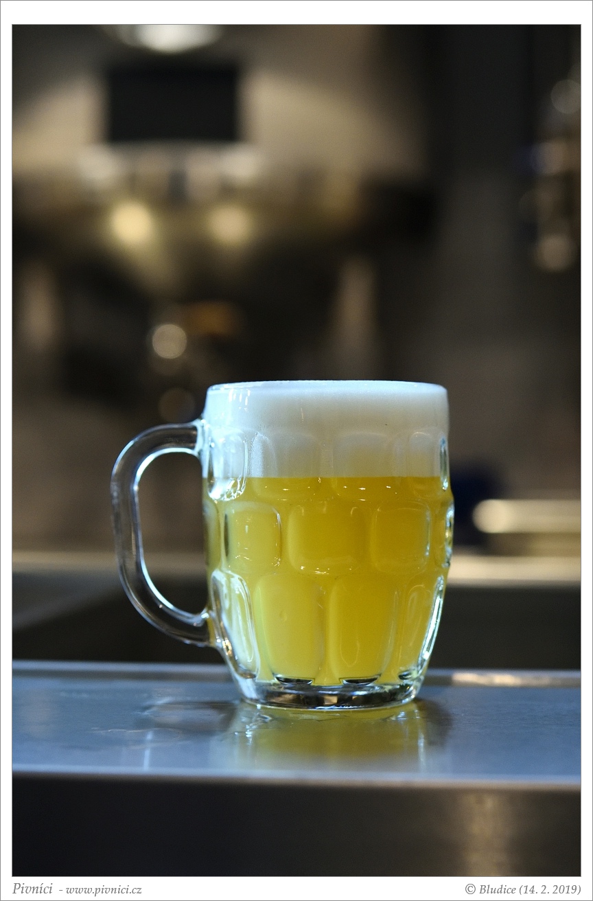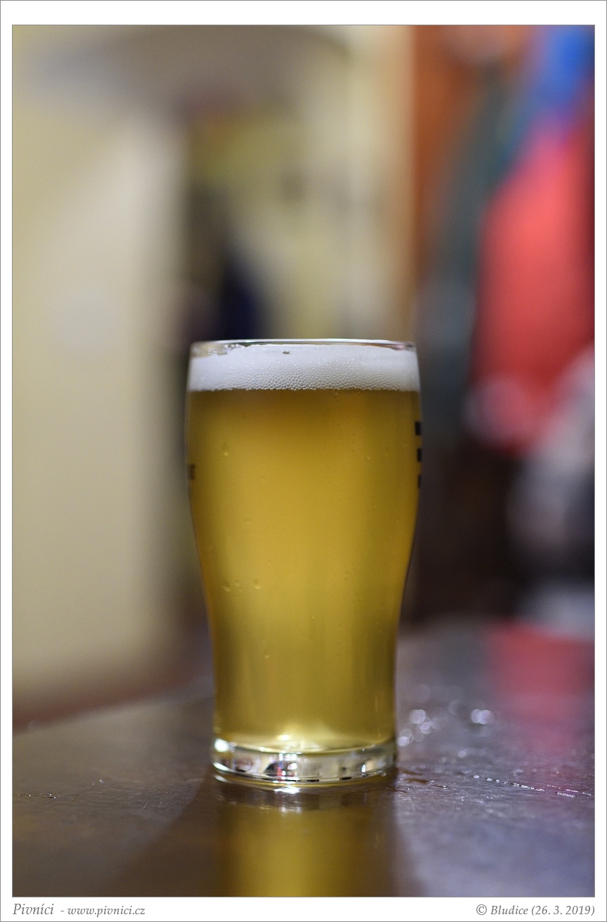 Zlatá barva, lehce zakalené. Nižší světlá pěna, dobře drží.Vůně (3,5 - velmi dobré):