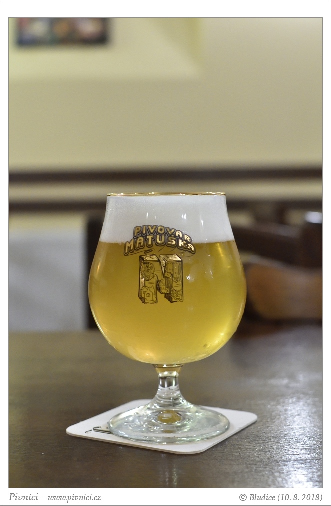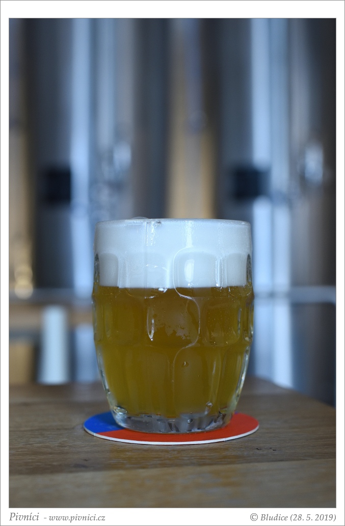 Světle zlatá barva, lehce zakalené. Pěkná světlá pěna, dobře drží, krásně kroužkuje.Vůně (3,5 - velmi dobré):