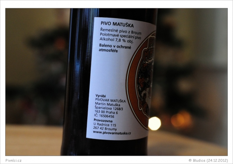 … počátku ledna. Ulovili jsme jednu láhev Vánočního Matušky. I letos to bylo dobré pivko, hořkosladké, vydatně chmelené a …