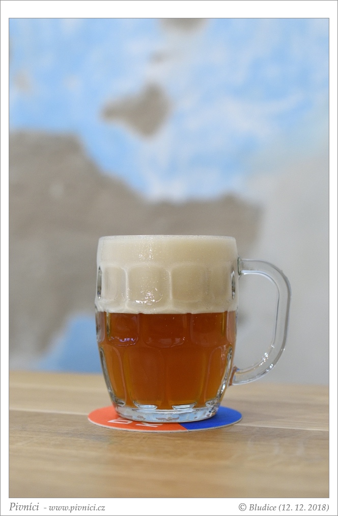 Barva měděná, zakalené. Pěkná hustá stabilní pěna. Kroužkuje.Vůně (2,5 - lehce nadprůměr):