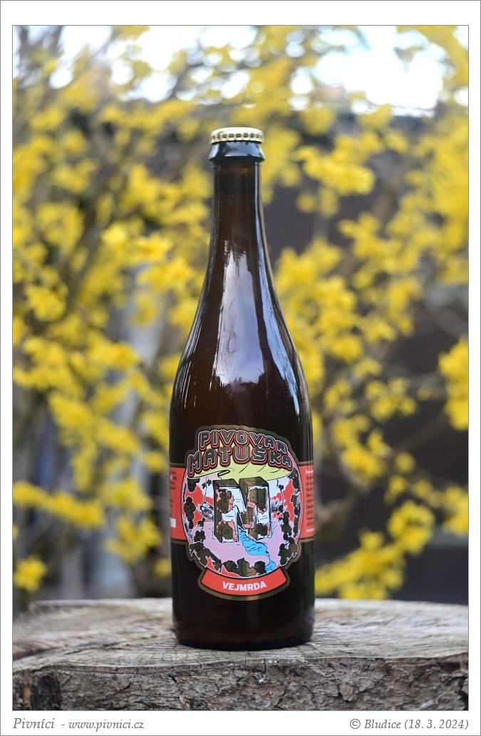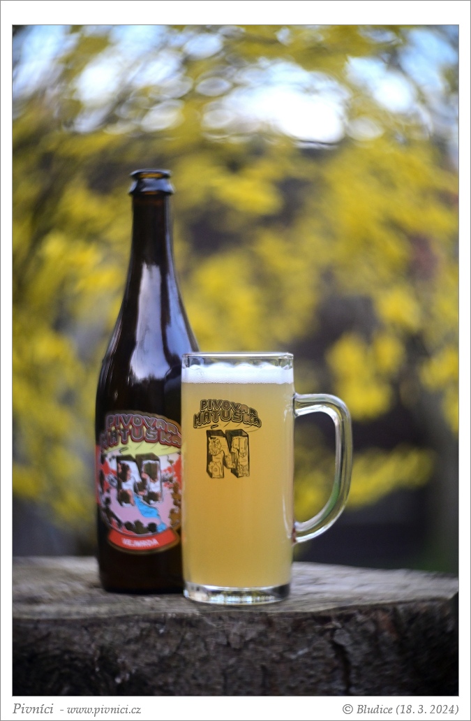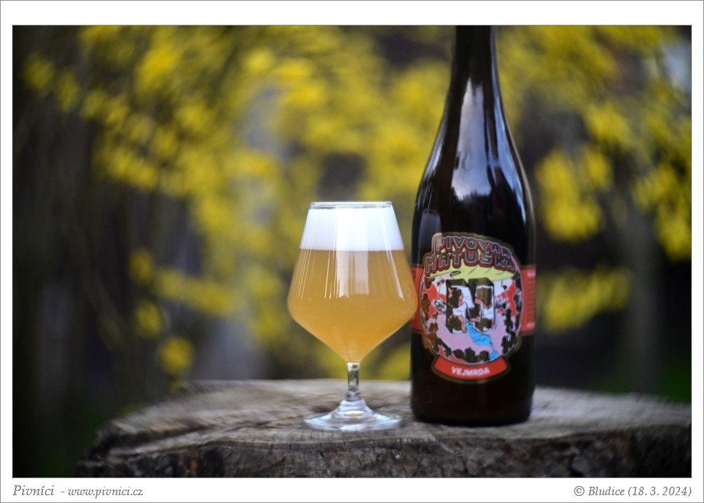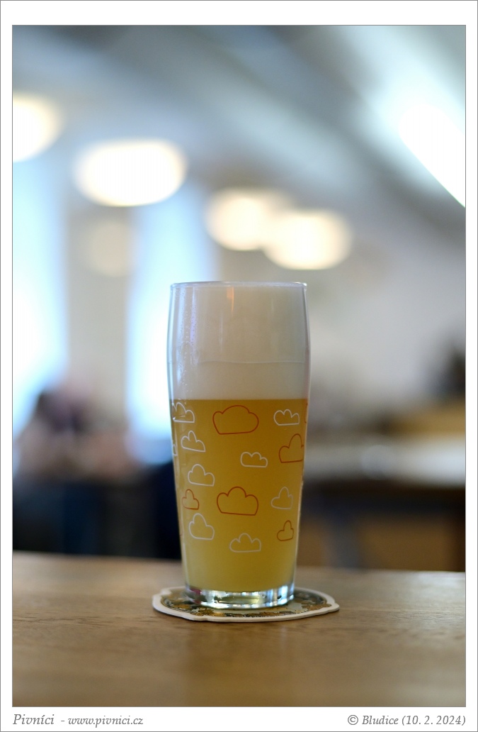 Světle zlatá barva, více zakalené. Pěkná světlá pěna, dobře drží.Vůně (3,5 - velmi dobré):