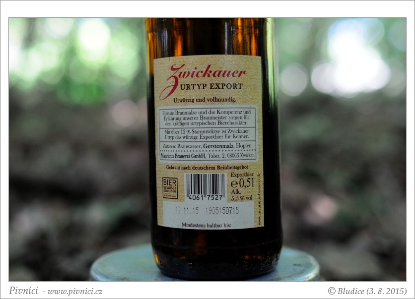 Průměrně pitelné pivo.Minimální trvanlivost: 17. listopadu 2015