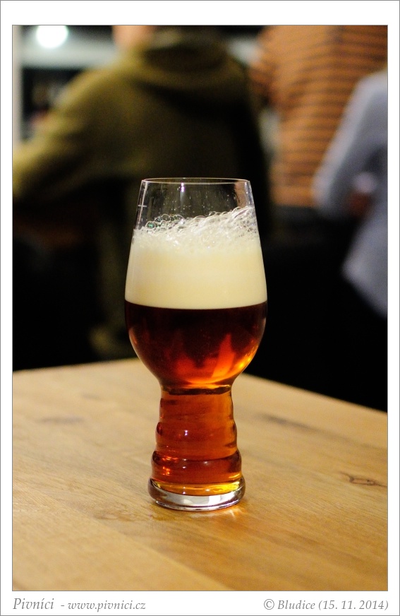 Tmavě měděná barva, čiré, pěkná světlá pěna s okrovým nádechem, slušně drží, lehce kroužkuje.Vůně (3 - dobré):