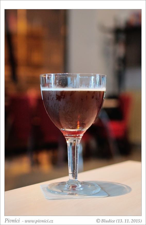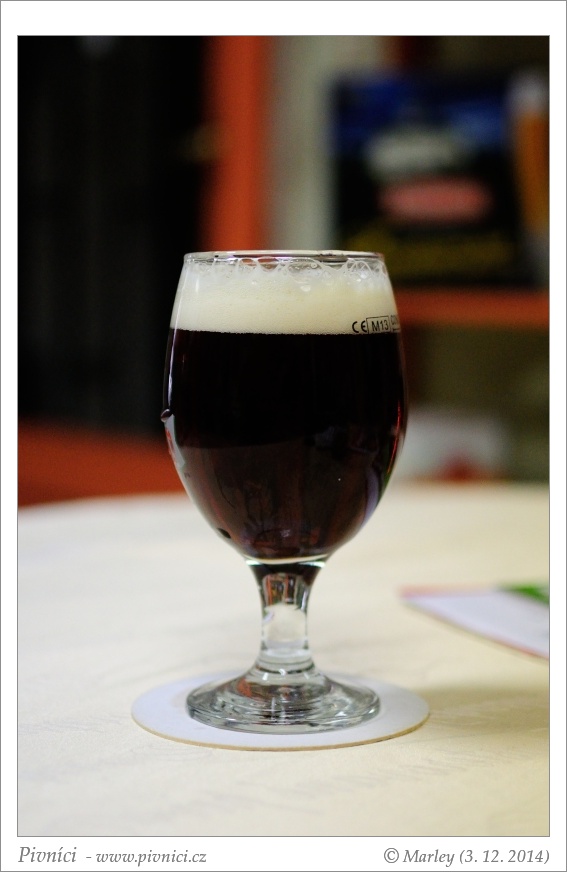 Mahagonová barva, čiré, pěkná světle okrová pěna, slušně drží.Vůně (2 - průměr):