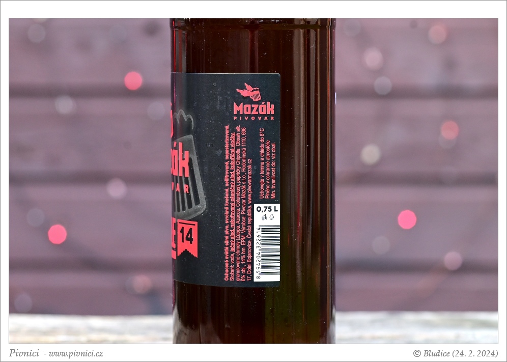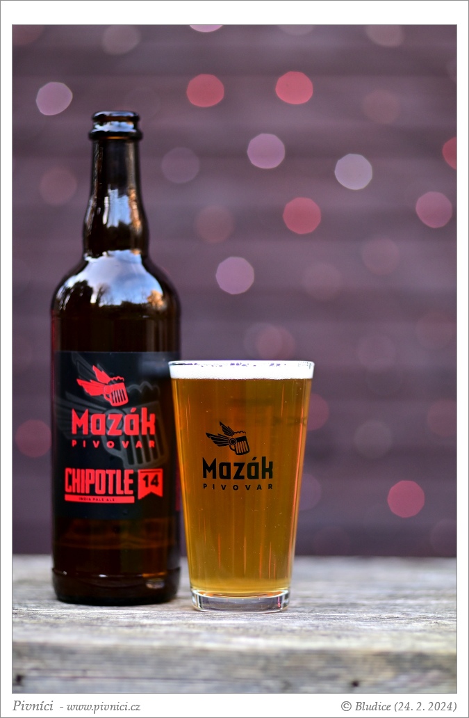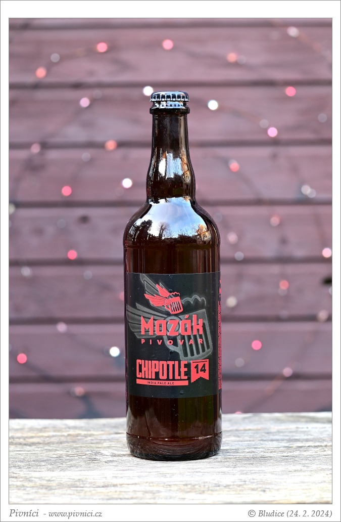 Fajn chipotle IPA, méně výrazně chmelená s příjemnou uzeností a velmi jemnou čili pikantností. Popíjí se velmi dobře.Minimální trvanlivost: 29. března 2024