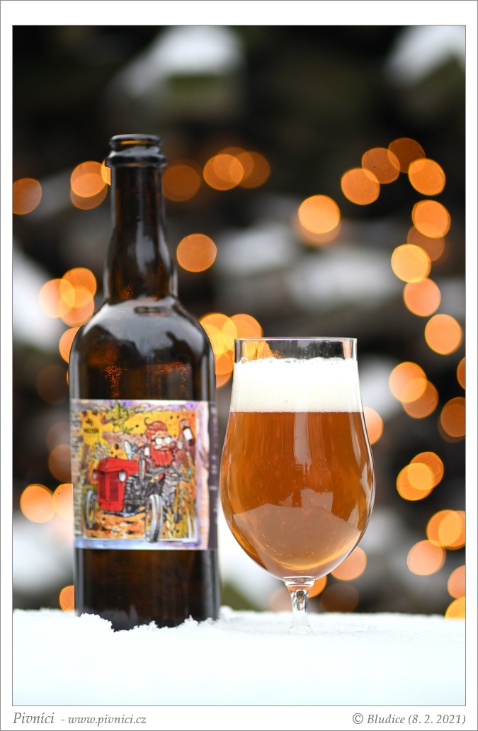 Zlatá barva, více zakalené. Pěkná světlá pěna, dobře drží.Vůně (3,5 - velmi dobré):