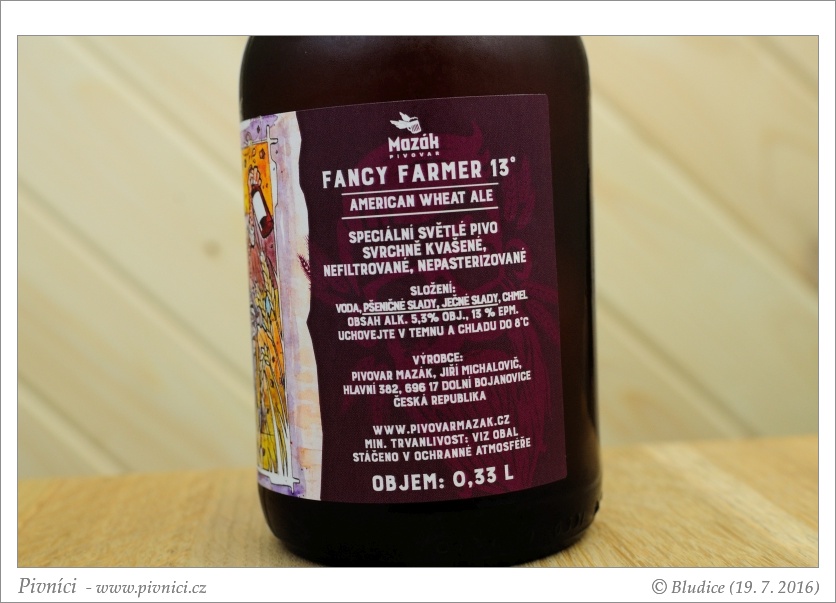 Výborně pitelné, pěkně chmelené pivo. V zahraniční konkurenci by se určitě neztratilo, včetně moderní etikety. Vydařené.Minimální trvanlivost: 13. srpna 2016