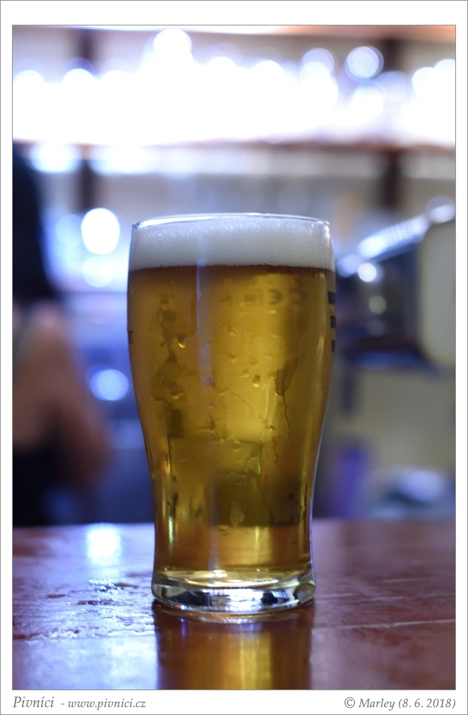 Zlatá barva, čiré. Pěkná světlá pěna, dobře drží.Vůně (3,5 - velmi dobré):