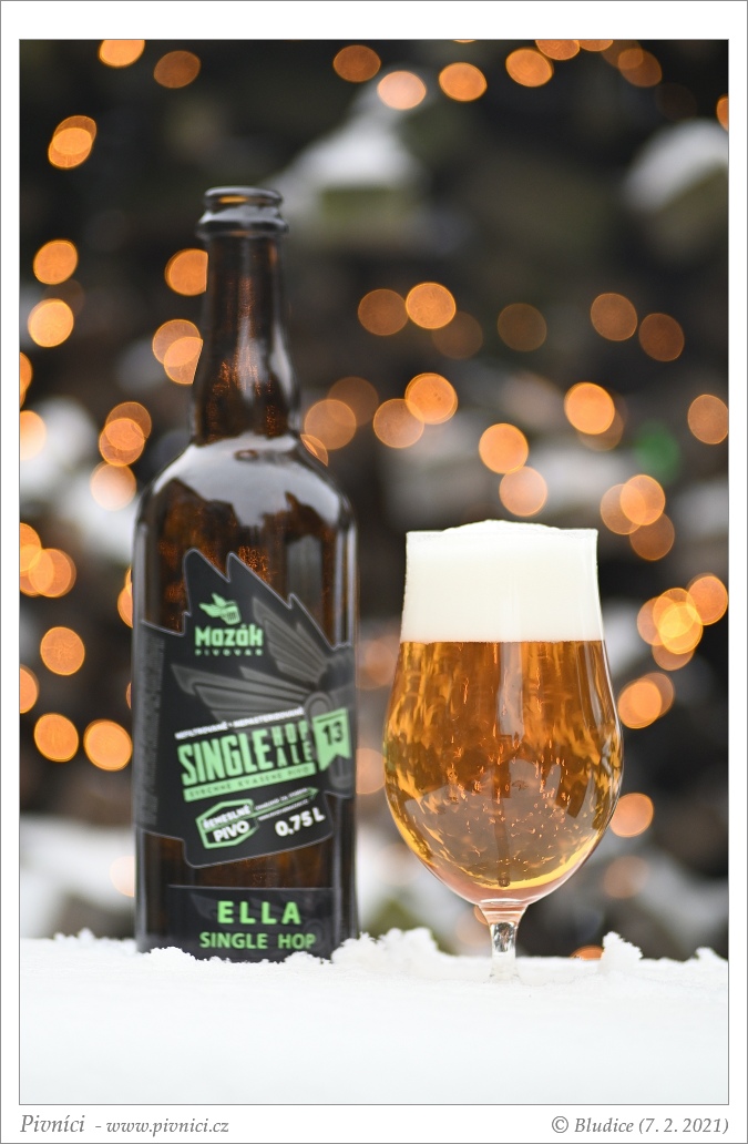 Zlatá barva, čiré. Pěkná světlá pěna, dobře drží, dobře kroužkuje.Vůně (3 - dobré):