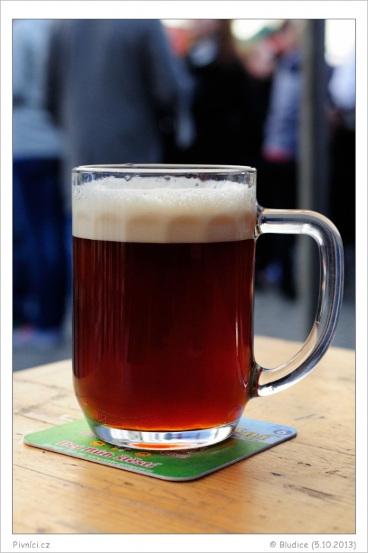 Tmavě měděná barva, lehce až středně zakalené, průměrná světlá pěna s okrovým nádechem a většími bublinami.Vůně (1,5 - nedobré):