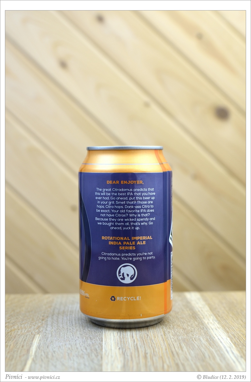 Šťavnatá a výrazně ovocná silná IPA. Výborně se popíjí.Stočeno: 11. října 2018