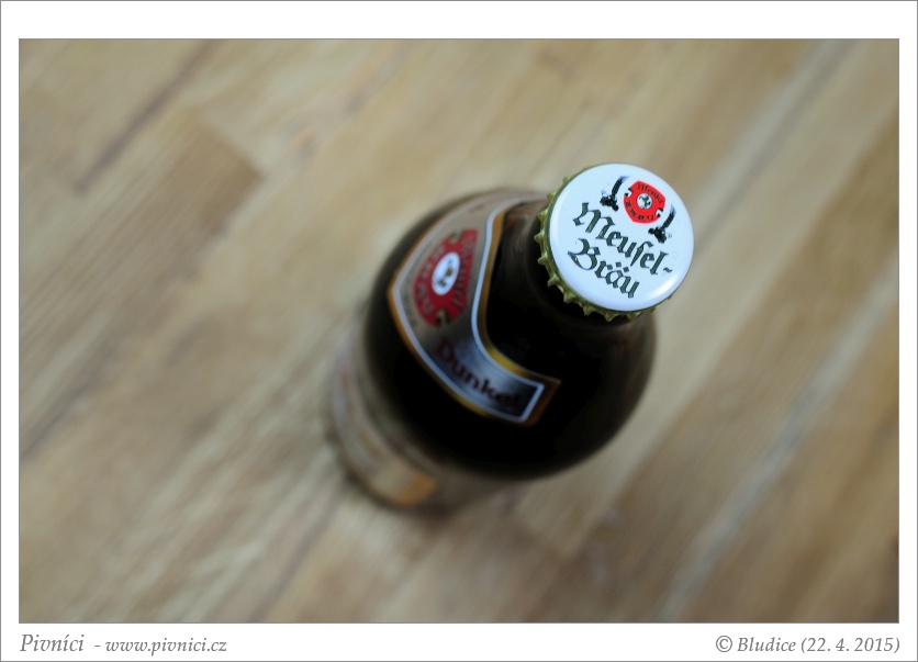 Mahagonová barva, čiré s trochou plovoucích částeček, pěkná světlá pěna s béžovým nádechem, slušně drží.Vůně (1,5 - nedobré):