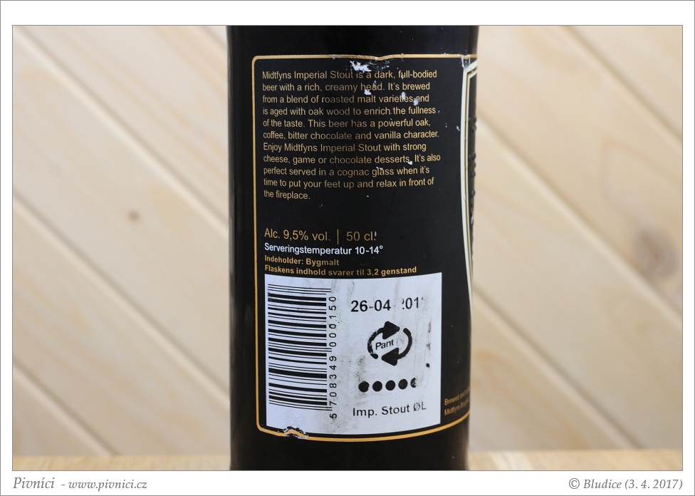 Chutný imperial stout. Velmi dobře se popíjí.Minimální trvanlivost: 26. dubna 2018