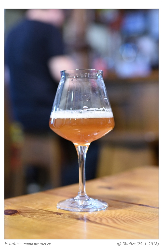 Barva světle měděná, lehce zakalené. Pěkná hustá poměrně stabilní pěna.Vůně (3 - dobré):
