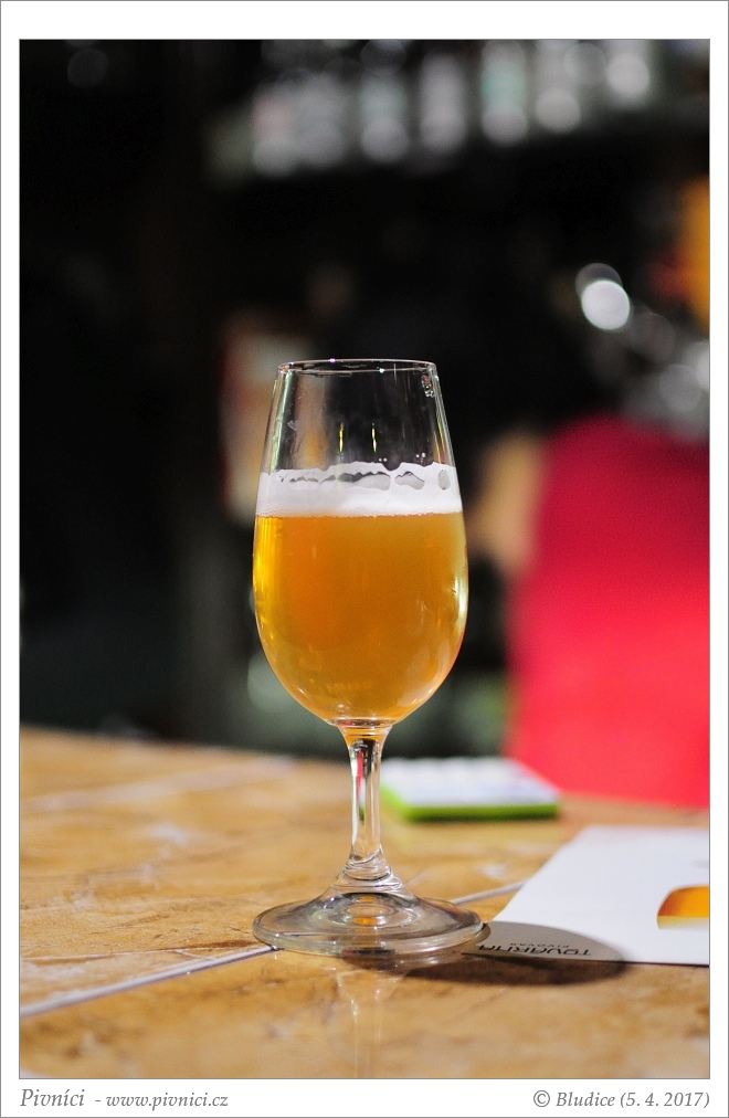 Zlatá barva, lehce zakalené (odpočívalo v klidu lednice skoro dva měsíce), pěkná světlá pěna, dobře drží.Vůně (4,5 - úchvatné):