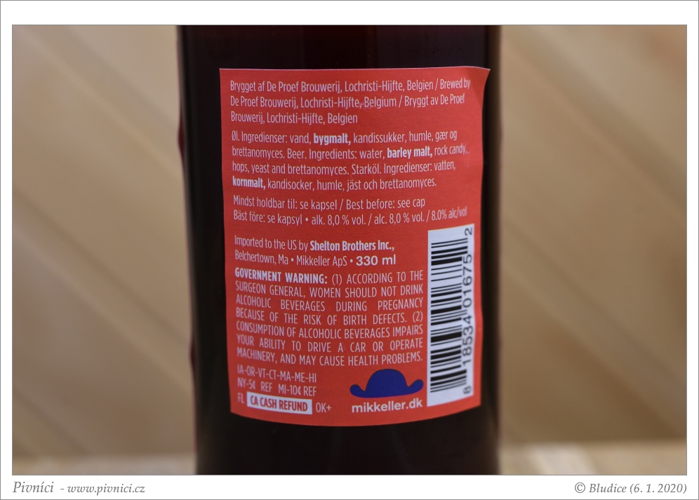 Vyšší jemný říz, nižší plnost. V chuti sladší, karamelové, peprné, s vyšší hořkostí a tóny citrusů (citronová kůry, grepy), lehce dřevité, s nádechem rozinek. Doznívání je karamelové, lehce medové, výrazně peprné, s tóny citrusů (citronová kůra, grepy), lehkou nakyslostí a lehce dřevitými tóny.Celkový dojem (7 - velmi dobré):